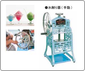 | 昔ながらの手回し式のカキ氷製造機です。パフォーマンス的にも情緒あふれる魅力的な商品です。電源が不要なのもうれしいですね! |