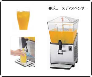 大量販売にはディスペンサーが最適!見た目も楽しいクリアボウルには容量たっぷり18Lものジュースをストックできます。つぶつぶジュースなど繊維質の多いものもOK! |