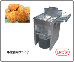 | サイズは小さいながらも安定した油温でカラッと仕上がります。LPガスを使用できない所では電気式フライヤーをご使用下さい。 |